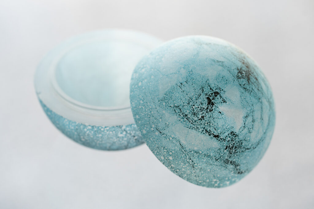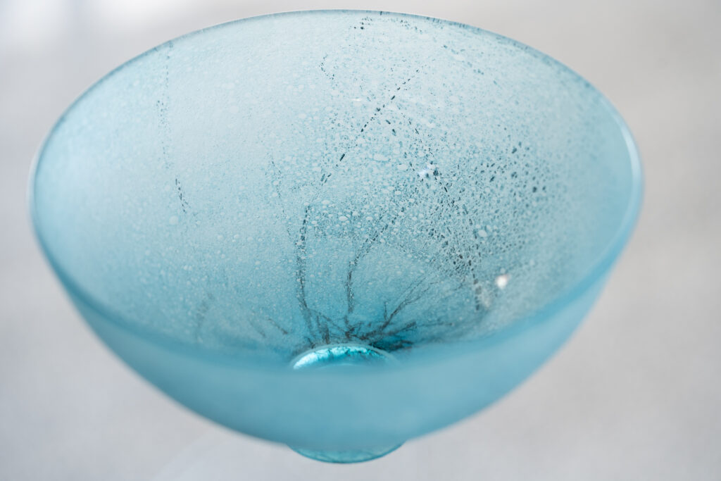 We are pleased to announce the first solo exhibition of glass artist Yuko Sekino, based in Tanba-Sasayama, Hyogo Prefecture. Yuko’s works are distinguished by her refined glass-blowing techniques and the unique bubble patterns she applies to the surface of the glass using methods she has developed herself. The fusion of intentional form with the natural randomness of the bubbles produces a rich visual expression, brought to life through the transmission and reflection of light—a beauty unique to glass.