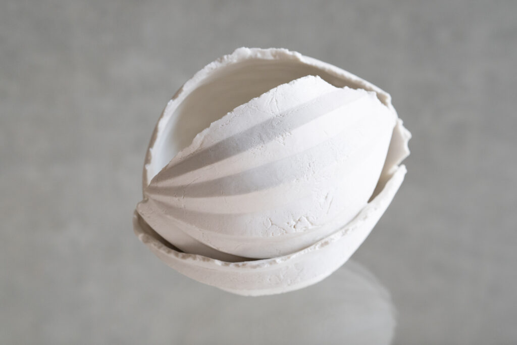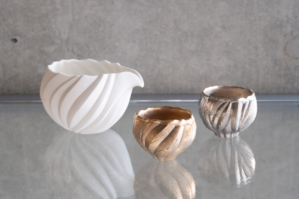 In the refined presence of porcelain, Nami Takahashi’s works quietly reflect the abundance of nature. Flowing sculptural lines shift with light and angle, a subtle tension remains as each piece is released from its mold, and the surfaces are polished until completely smooth. Each shape carries a quiet presence, saying little yet leaving a clear impression. For her first solo exhibition at HULS Gallery Tokyo, the lineup includes sake ware, vases, objets, as well as Gaiwan and tea cups, which highlight HULS’s specialty in tea ware. Through this diverse range of works, she introduces her world of “the beauty of everyday things.”